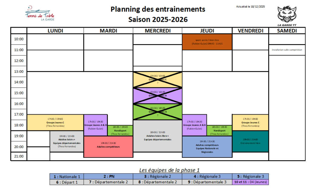 Rencontres des équipes 1 à 5 (Nationale, Pré-nationale et Régionales)
